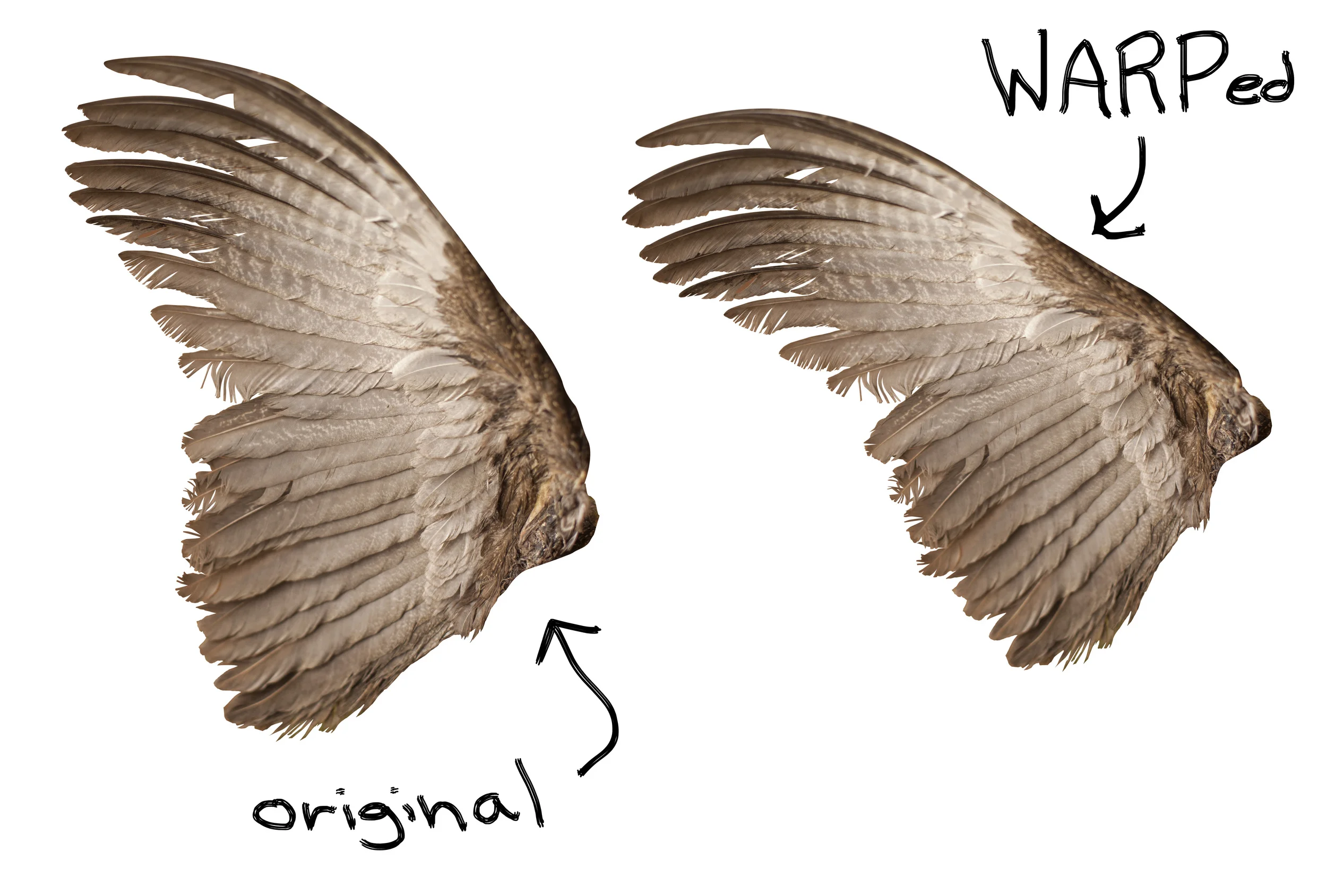 Your flying dude or dude-ette might be facing the camera straight on with their wings spread wide. You therefore may be inclined to think, "Oh, well I've already taken the time to cut this detailed wing out, so I'll just save some time and flip it to use for both side." Please try not to think that. (Maybe you're going for a super symmetrical image or something, and in that case have at it. This is your art, but here's how I feel...) We have all been training since we were adorable little children to find matches and differences in things. Games like "one of these things is not like the other," "spot the differences picture books," or the card game "memory," have all helped to shape our brains and sharpened our skills to find things that are alike or not. If both of your wings are identical, most people are going to catch on quite quickly to the matching intricacies and know that you've cheated, thus pulling them out of the image and smashing their suspension of disbelief to pieces. "Oh, that's the same wing that they've just flipped and put on both sides." We never want our audience to think the wings are "put on." We want them to think, "Whoa look at that be-winged badass who clearly has real wings that are really there...and real."